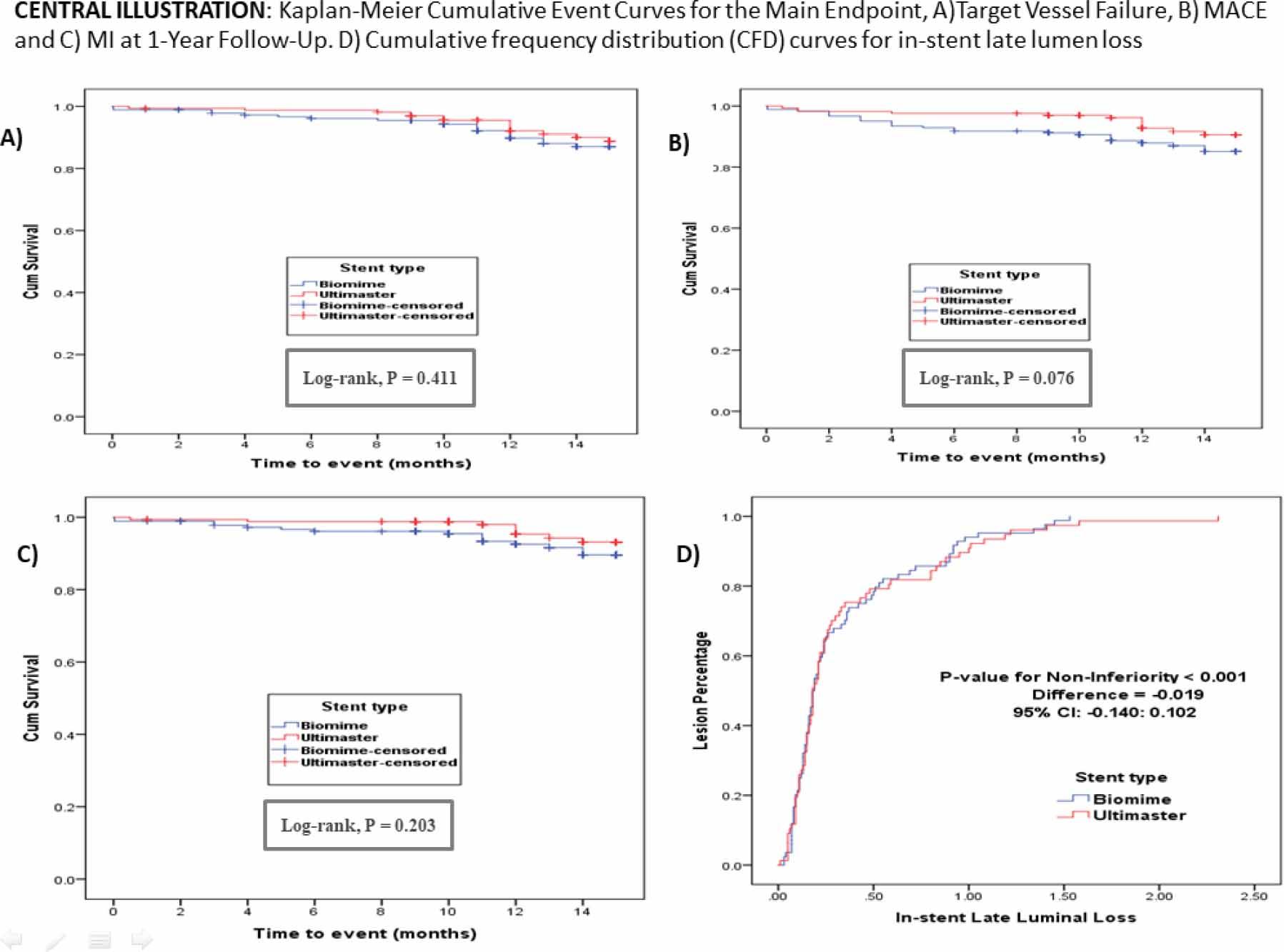 | Biomime (n=183) | Ultimaster (n=166) | Diff and (95%CI) | P | ||