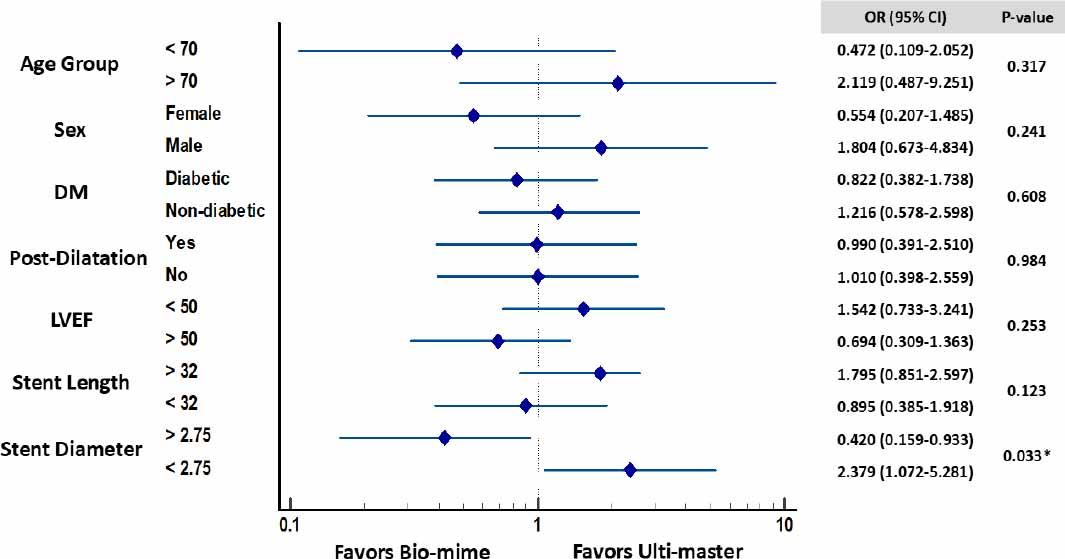 | Stent diameter (mm) | 2.25 | 1 (1.0%) | 1 (1.0%) | <0.001* |
