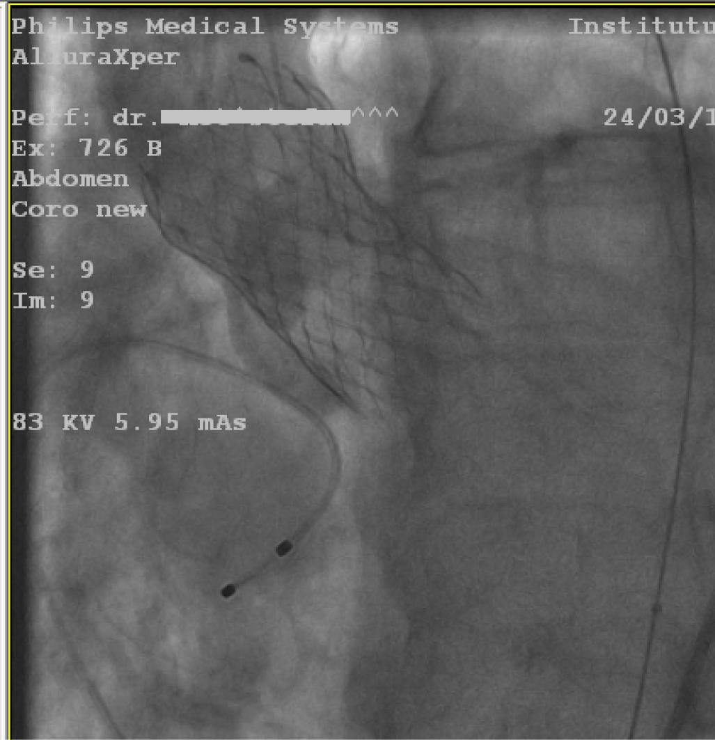Fluoroscopic image: deployment of the Medtronic valve.