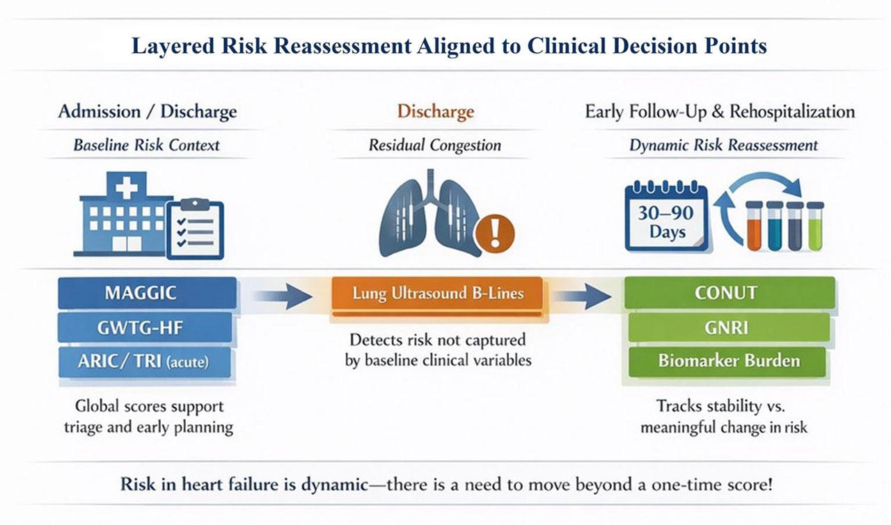 | Acute admission triage (HFpEF) | ARIC AD-HFpEF; GWTG-HF; TRI [10][11][12] | Short-term mortality risk using readily available vitals and labs | Early triage and discharge planning; prioritizing follow-up intensity | GWTG-HF derived in mixed-EF populations; TRI trades physiologic specificity for speed |