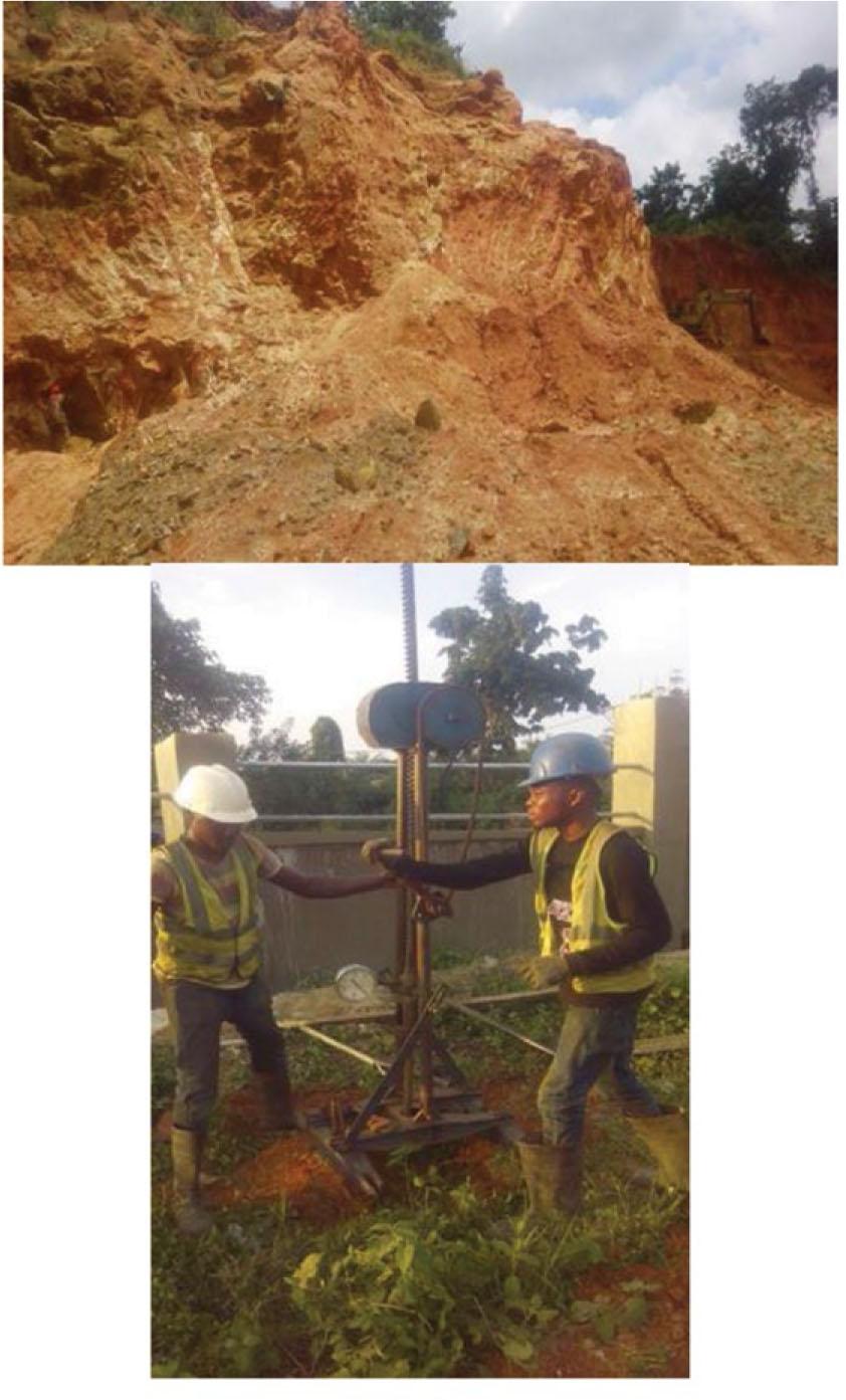 Field Pictures of the thick lateritic clay deposit in Odigbo and Cone penetration test.