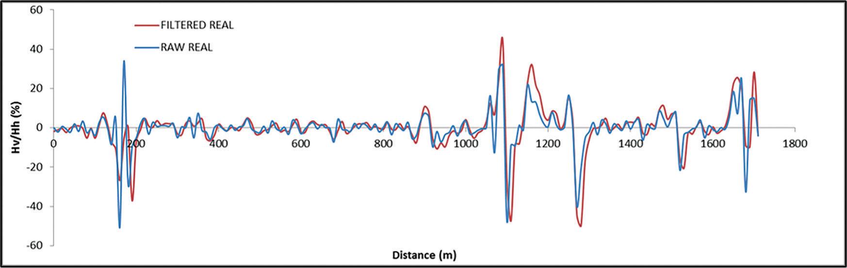 Distances of 100–150 m and 1200–1260 m correspond to the stable zones and are composed of highly resistive materials. These portions are characterized by lower values of relative current density. The stable segments of the road are generally devoid of geological features [7, 9, 18].