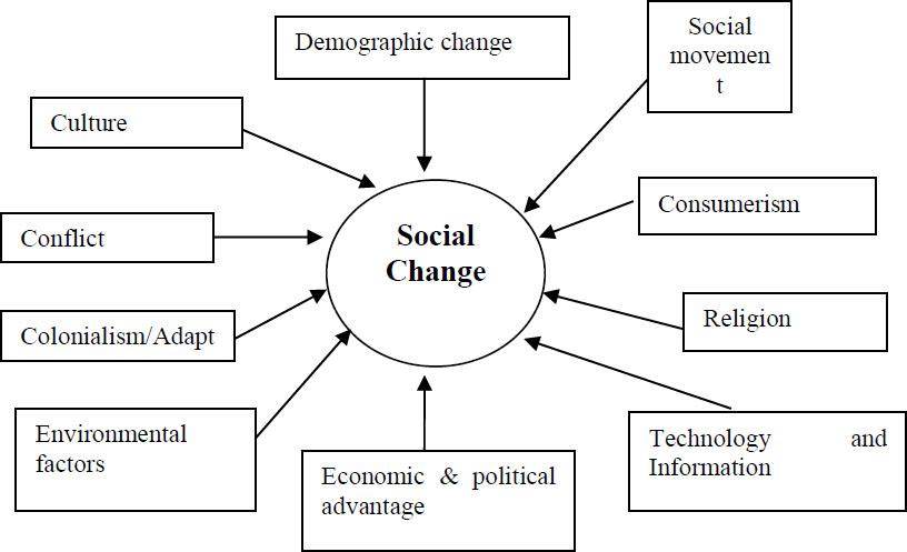 The causes of social change across human societies are essentially linked to either internal or external forces; natural or non-natural events; historical or contemporary issues. This perception is supported by the diagram presented below on the factors that can bring about social change in society.