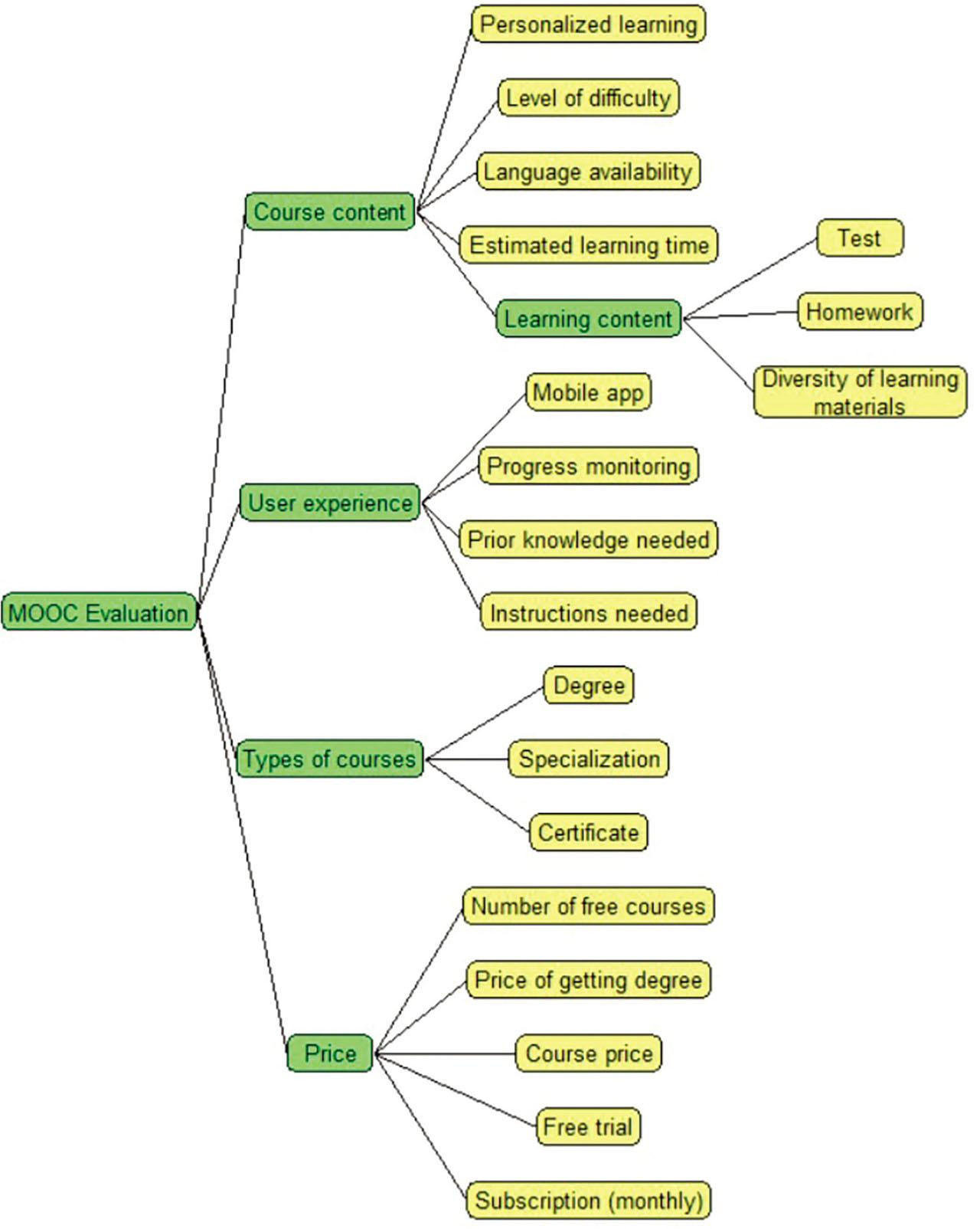 To evaluate online educational platforms, we used the following criteria and the values that the criteria can take: