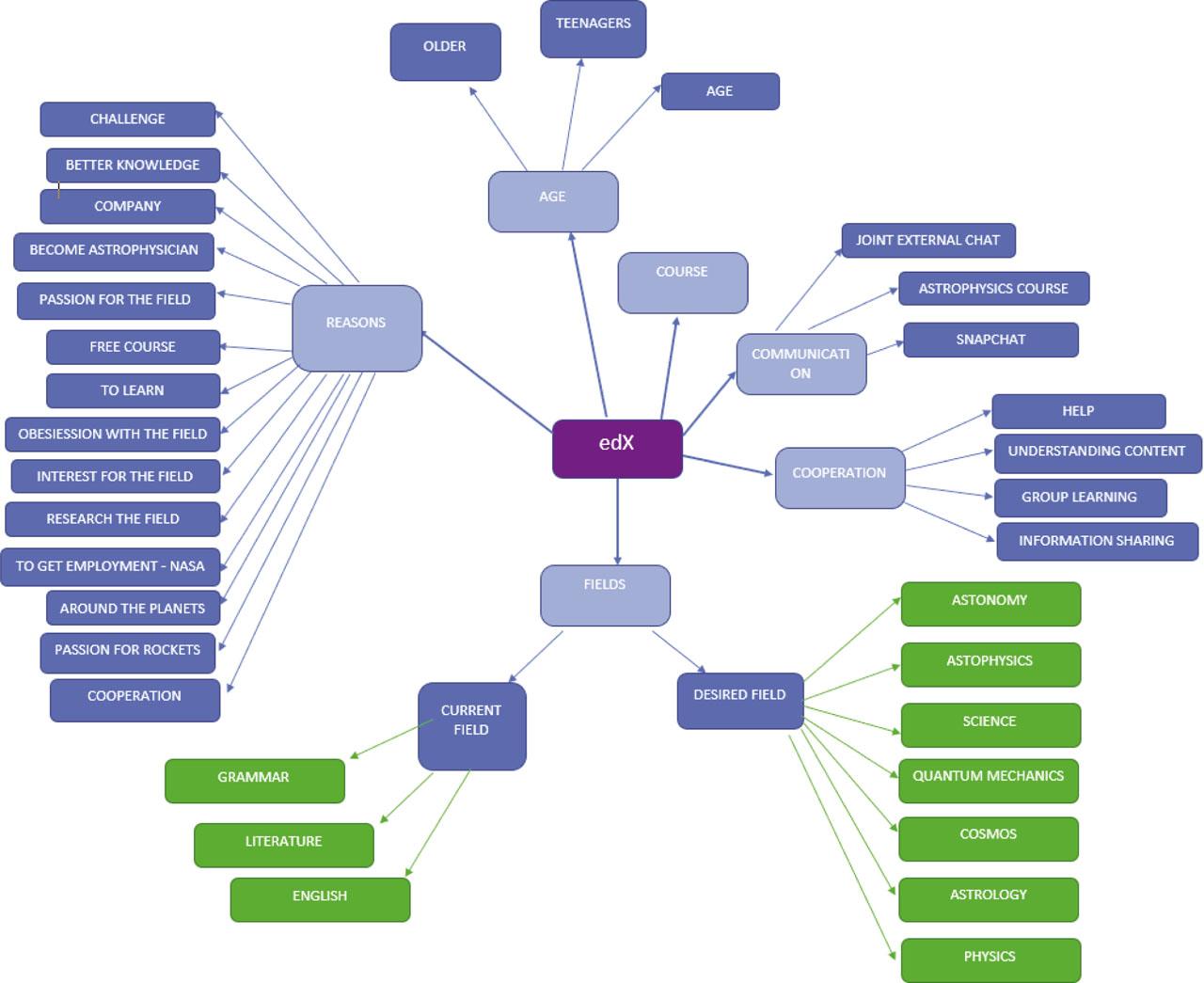 Using the netnography method, we reviewed 39 comments made by participants in the Introduction to Astrophysics course on the edX online platform. The concepts and categories were formulated into a paradigmatic model, as shown in Figure 5.