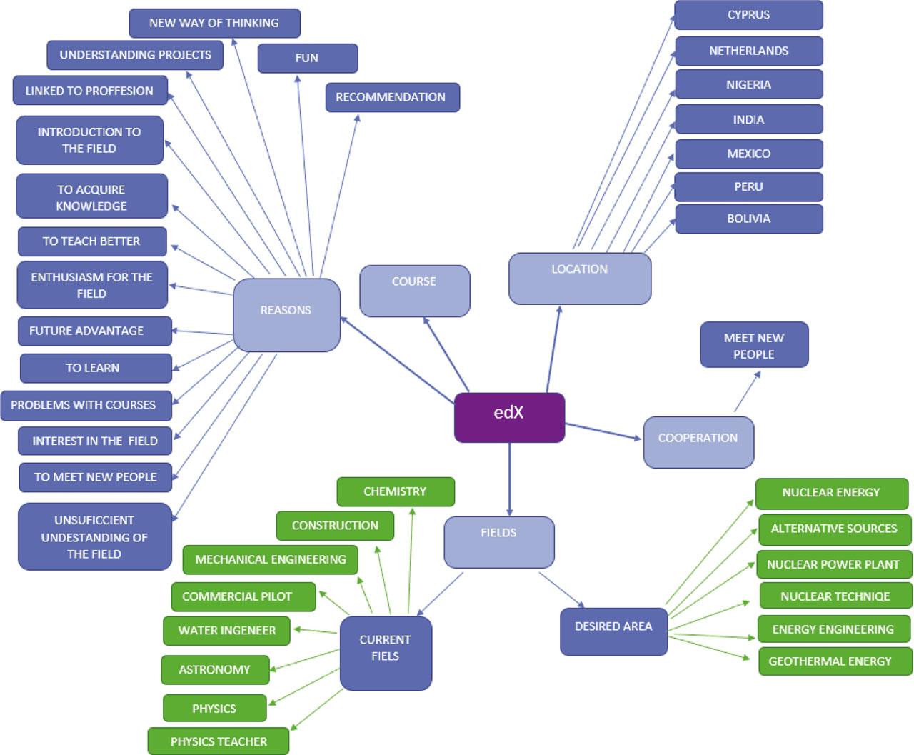 The main reasons and objectives for signing up for the free course on the edX online educational platform were gaining new knowledge, an increased interest in the chosen field and getting a job. In addition, the reasons that the course is free and to meet new people were also listed. The reasons for taking a paid course on the edX online platform were not very different from those for taking a free course. Most frequent reasons were the desire to gain new knowledge and increased interest in the chosen field. However, there were additional reasons that point to improving current career performance and planning an existing career. A minority of reasons included having fun, a recommendation from a friend and meeting new people.
