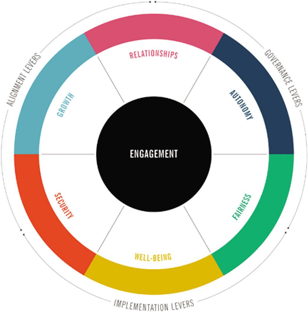 They identified engagement drivers that influence the engagement level: growth, relationships, autonomy, fairness, well-being and security. Leaders should focus on these drivers to improve overall engagement level in the organisation. In order to be engaged, the employees need to feel growth (both personal and professional), have good relationships within teams, sense that they are treated fairly compared to other employees, and see a fair financial aspect and additional benefits that make them feel relaxed; additionally, it is also necessary for the company to take care of them and make them feel safe.