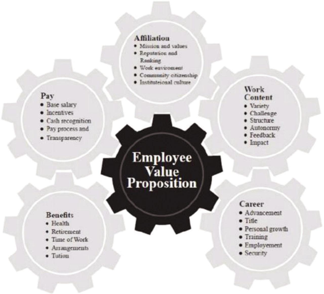Employee value proposition (EVP) is a type of framework that posits a mechanism that can be used for gauging the value that an employee attaches to the organisation in which he is employed, as well as for ascertaining how the employee perceives it. This is an important concept because it represents the opinion that the employee has about the organisation in terms of benefits, culture, working environment and other important dimensions that represent the general image of the organisation.