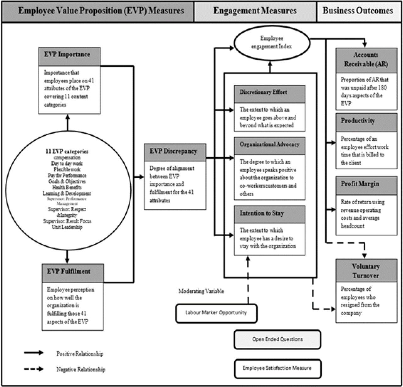 Linkage model of the EVP, employee engagement and business outcome measures. Source: Heger (2007, 125). AR, accounts receivable.