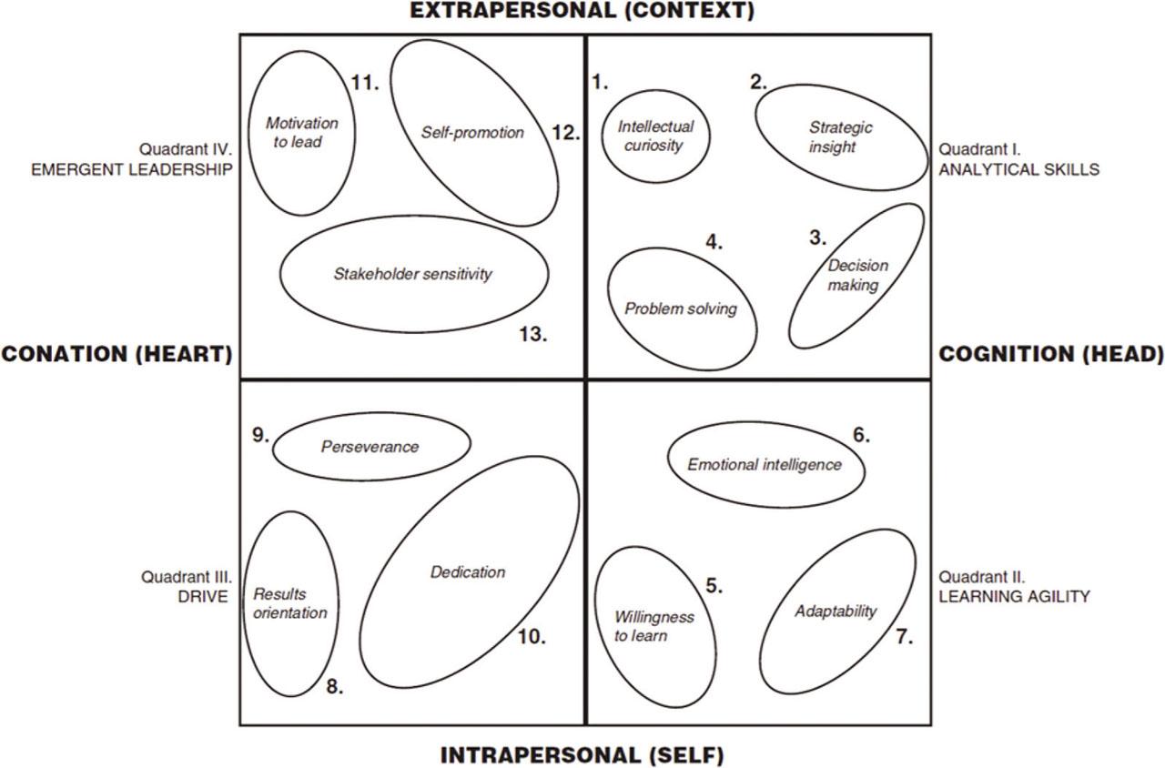 Dries and Pepermans (2012) undertook research on leadership potential with recognition of 77 identification criteria grouped into 13 factors (Figure 6).