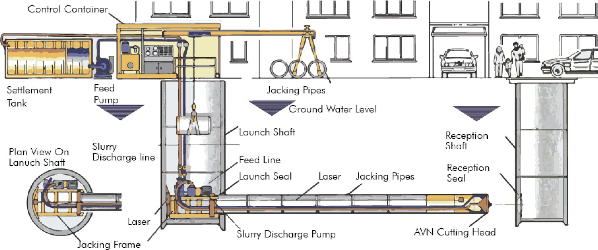 Typical microtunelling installation [15].