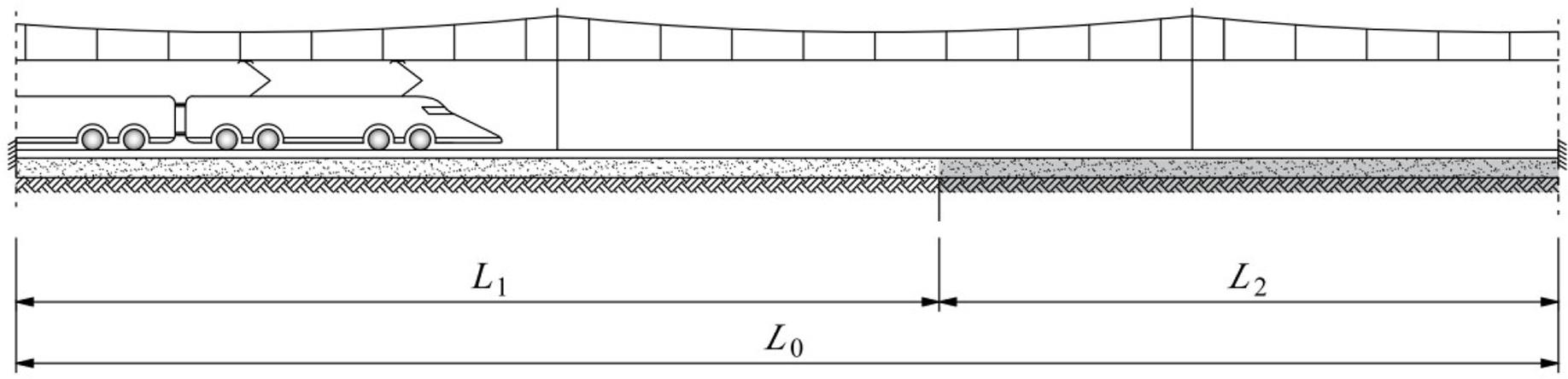 The considered section of the track is straight and horizontal, as shown in Fig. 3. Its total length L0 is divided into two segments: L1 and L2, due to an occurrence of the track discontinuity having the form of a sudden step change in the track stiffness. Such track stiffness discontinuities are usually of structural nature and exist along the track at such places as transitions from ballasted track to slab track (see Fig. 1) or bridge approaches, culverts, turnouts, ends of tunnels, etc. A train passage through the stiffness discontinuity of the track induces significant vibrations of vehicles and, thus, rail vibrations [21].