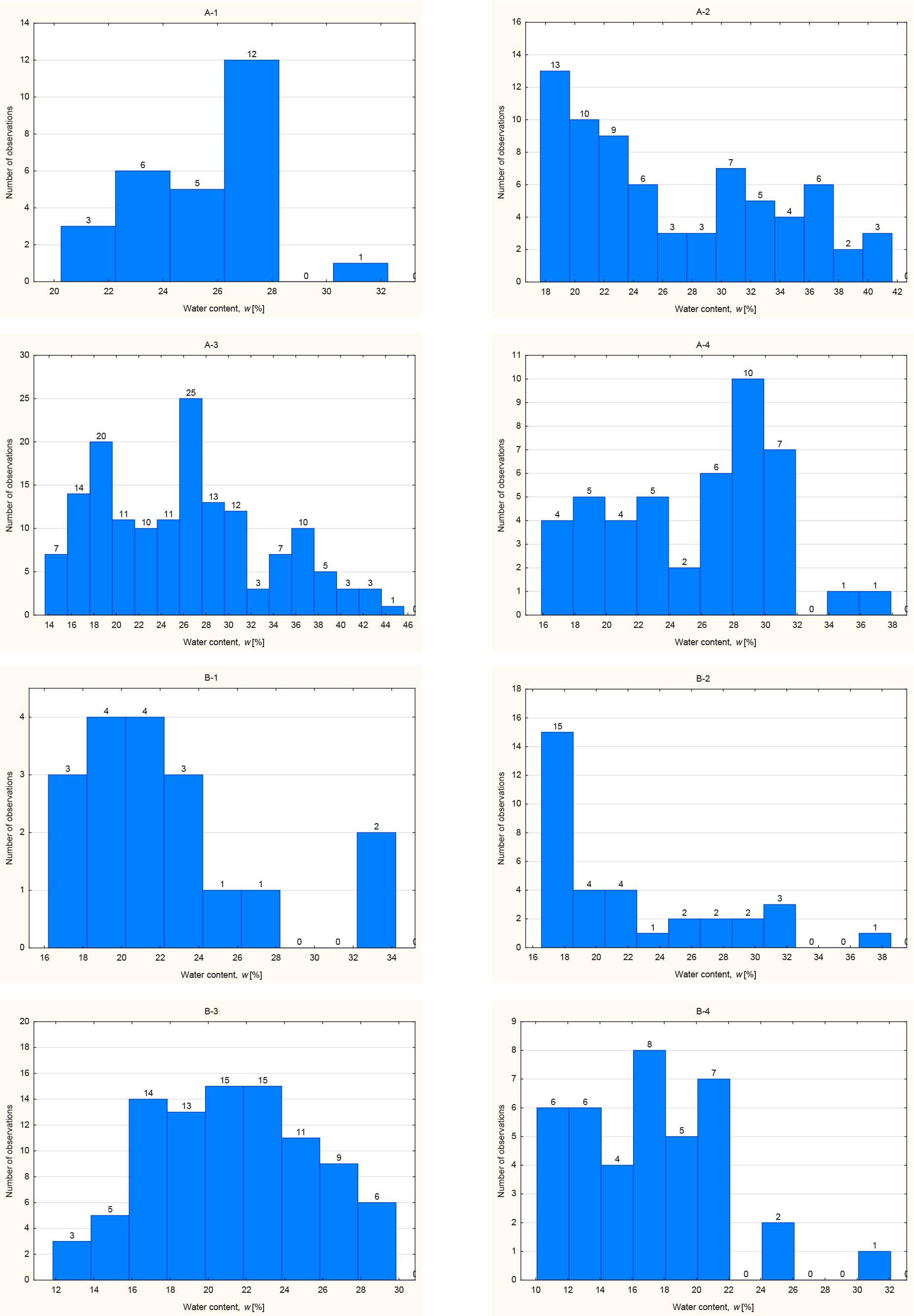 For particular groups of dump soils, the results of the water content tests are collected in Table 2. The heterogeneity of soil water content is also visible in particular soil groups (Fig. 3).