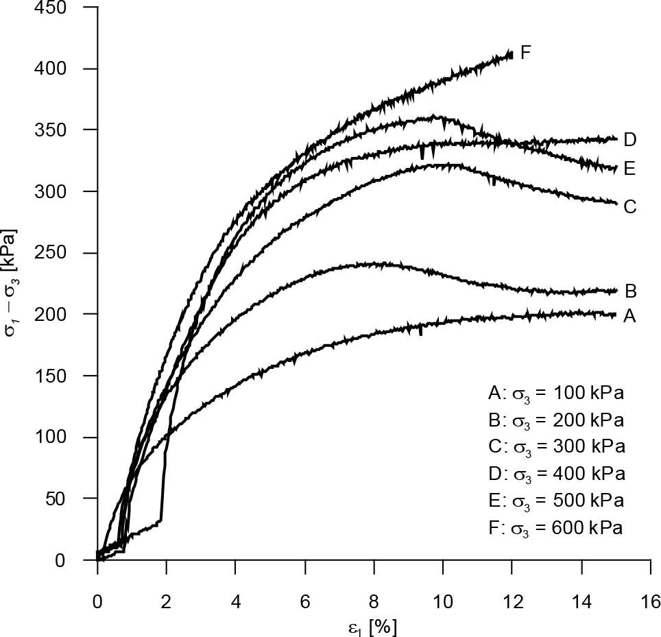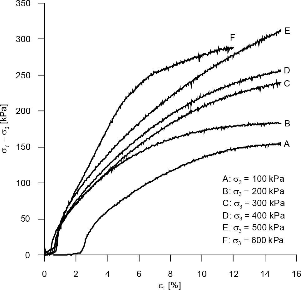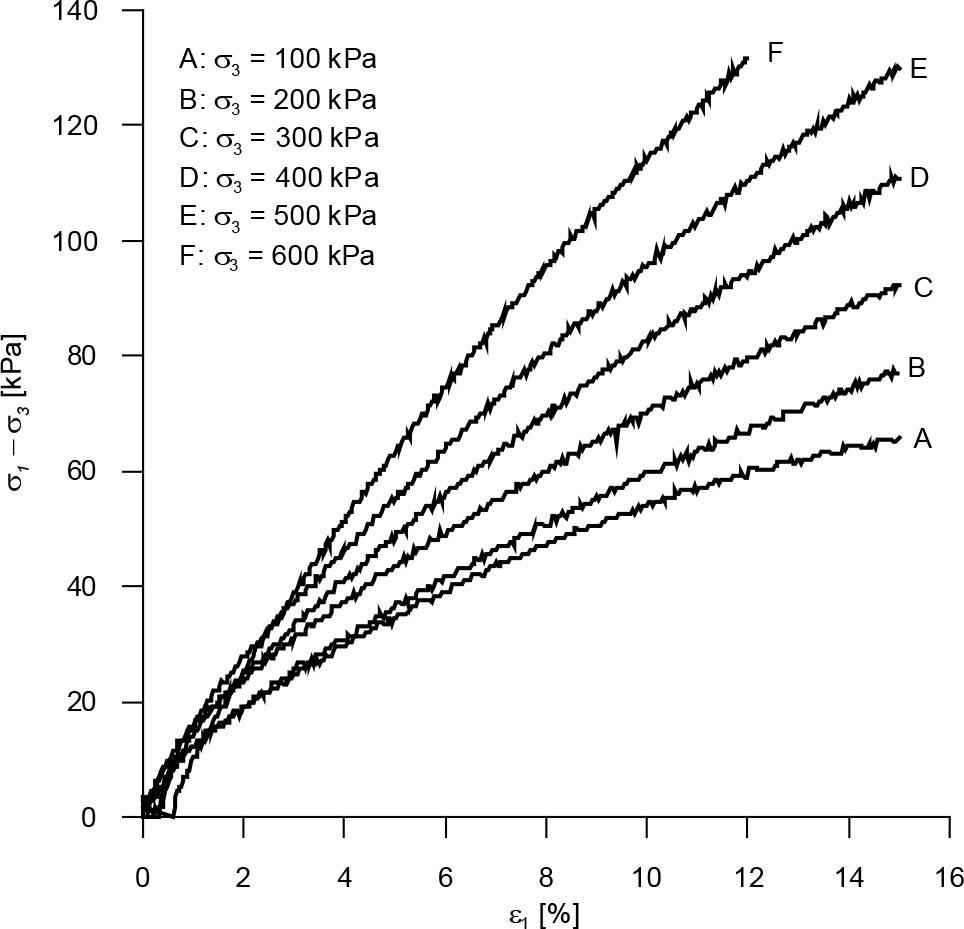 Soil specimens of soft and firm consistency (A-1, A-2, B-1 and B-2) deformed plastically (“barrels”) without a significant decrease in deviation stress with an increase in deformation (Figs. 8 and 9).