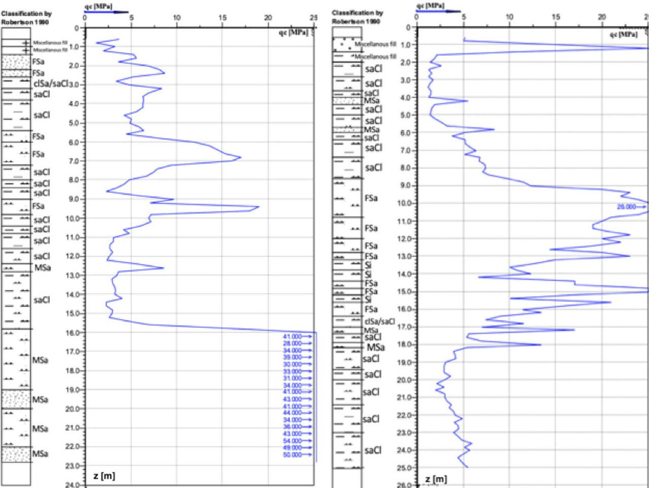For these piles, as mentioned above, we obtained the CPTu soil investigation results. The graphs are presented in Fig. 3.