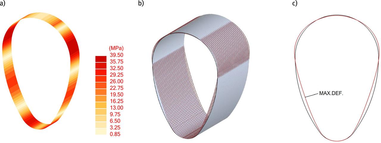 The results included in Table 5 indicate that the values of maximal stresses did not exceed the permissible value at a temperature equal to 25°C and 40°C, whereas for higher temperatures, the values of stresses exceeded the permissible value. Deformations in each case exceeded the permissible value.