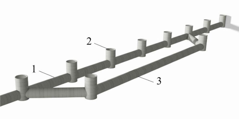 An example of an additional transit canal (1 – sewer canal, 2 - sewer manhole, 3 - additional transit canal) [28].