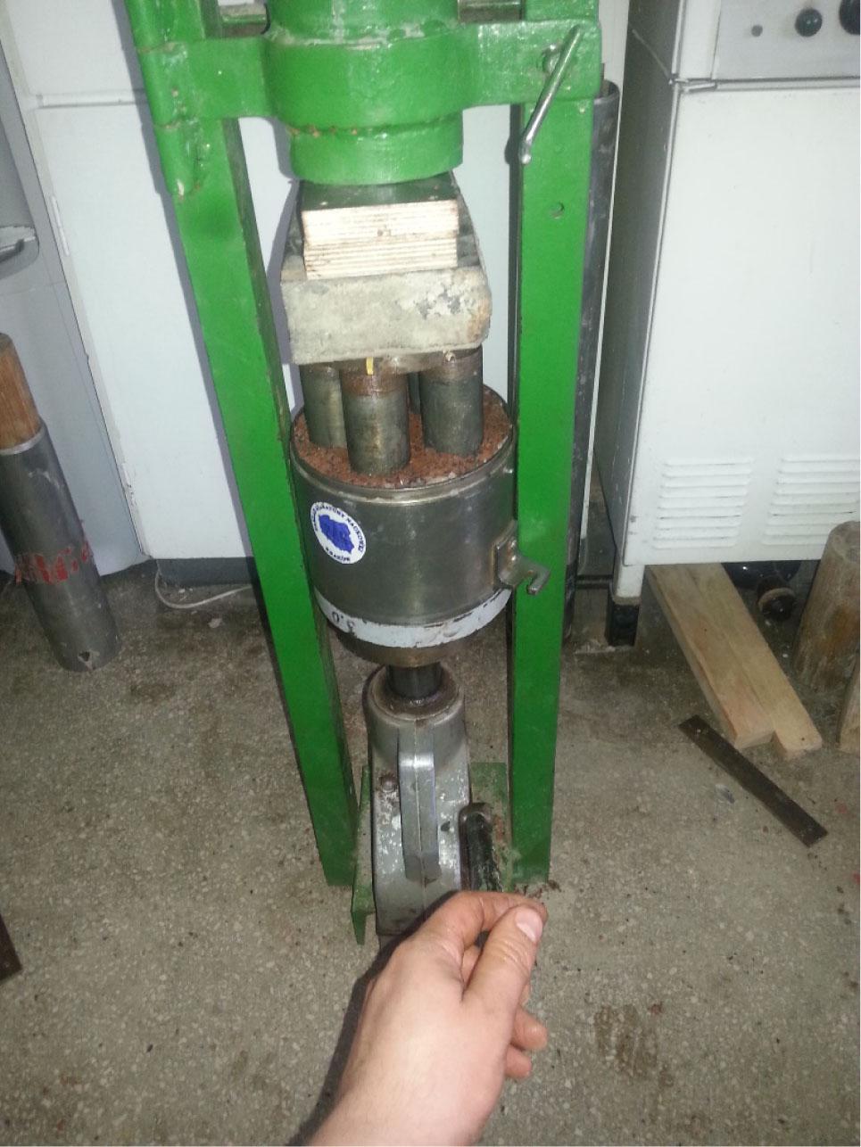 The proper specimens from RC and K, and their mixtures with granulate (RC-G and K-G) were prepared by cutting the specimens directly from a block prepared in a Proctor apparatus or by pushing out from the cylindrical forms pressed into Proctor's mold (Fig. 2). A detailed description of the samples preparation was presented in the works of Jastrzębska [18], Jastrzębska and Tokarz [24]. It is worth noting that with the higher content of rubber waste, the density of soil–rubber mixtures decreased accordingly: RC − ρ = 1.85 g/cm3, RC-G-10 − ρ = 1.62 g/cm3, RC-G-25 − ρ = 1.46 g/cm3, K − ρ = 1.94 g/cm3, K-G-25 − ρ = 1.52 g/cm3. This fact is important in the case of loading a weak subsoil with embankments made of soil–rubber mixtures.