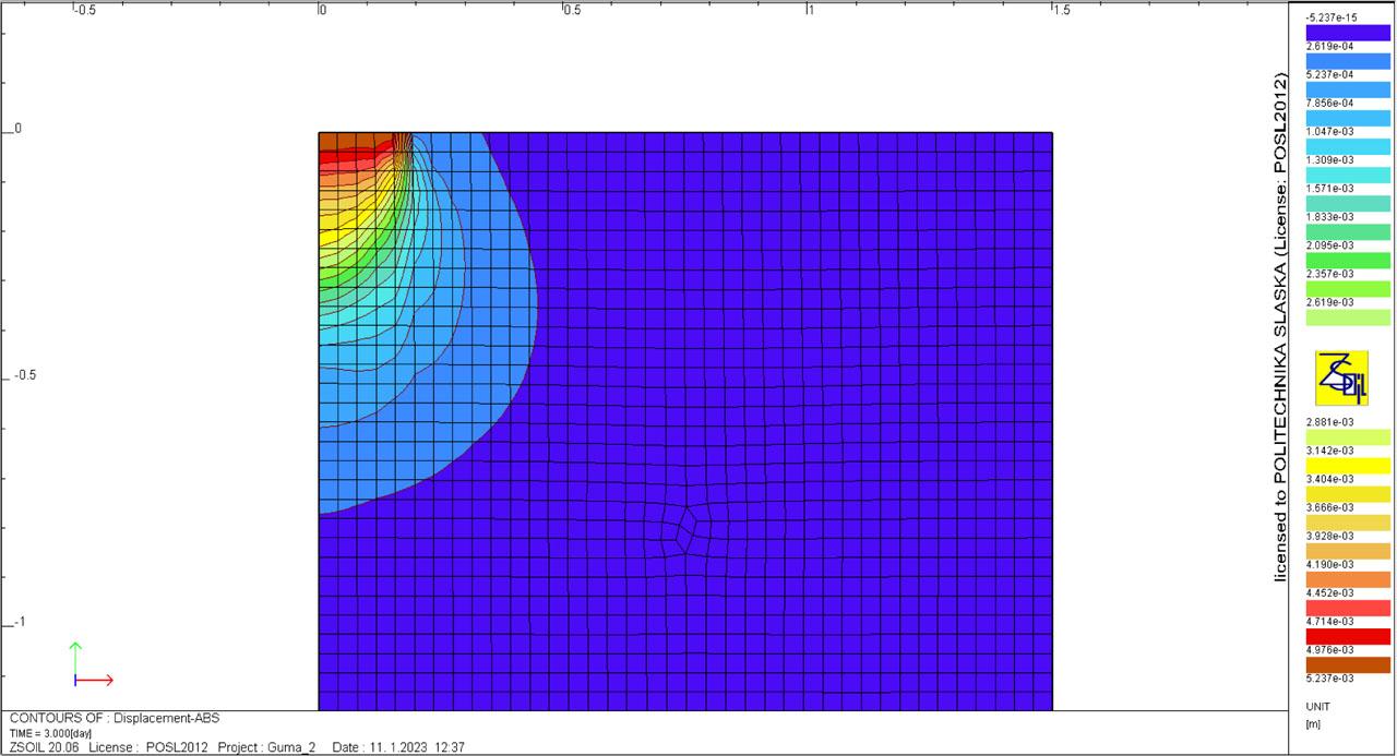 A common problem when performing numerical analyses is the selection of parameter values used in the computation. The use of advanced constitutive models makes it necessary to specify various parameters that often do not have a simple physical interpretation, which makes it impossible to determine their values on the basis of typical laboratory or field tests. Hence, the great desire to use simple models for which it is possible to precisely determine the values of model parameters [12]. Of course, then it is necessary to perform practical verifications that will confirm the correctness of the performed numerical analyses.