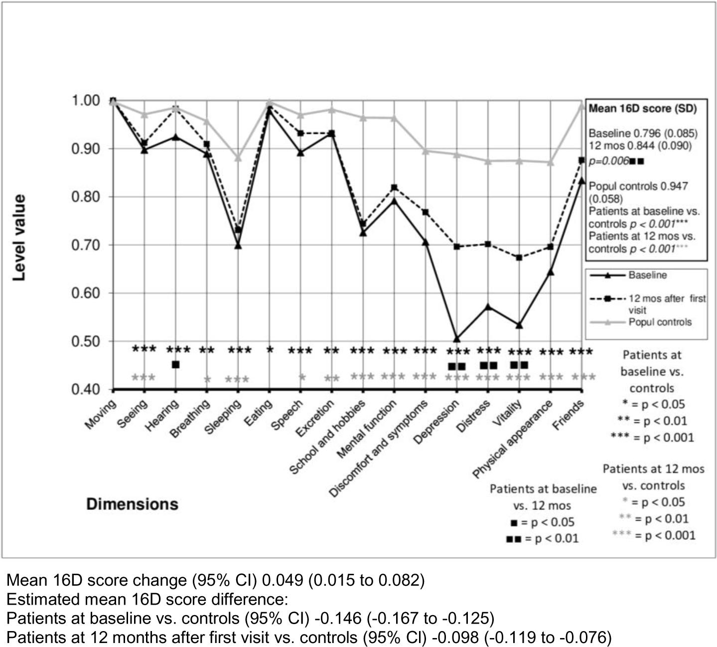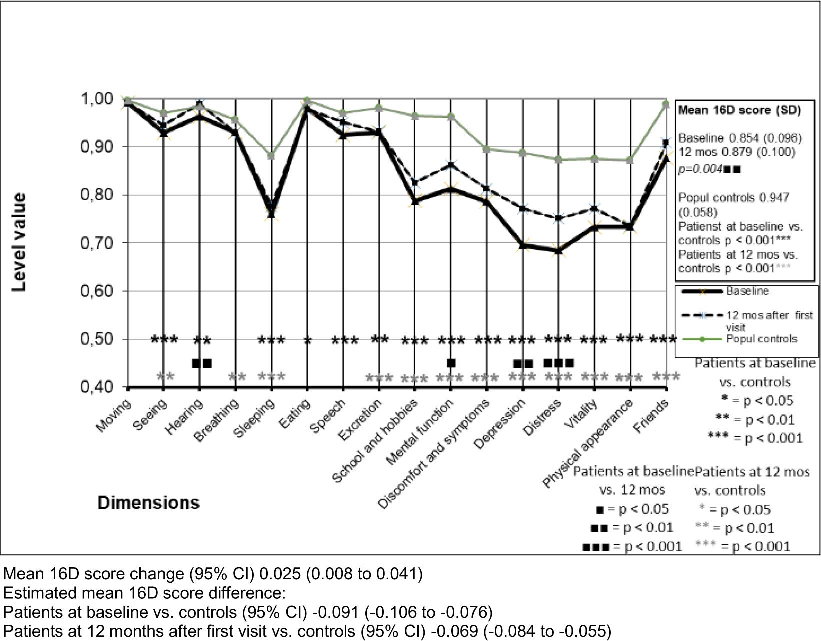 | Assistive equipments, visit | 0.3 (2.0) [0.01] | 0.3 (2.0) | 0 | 0.2 (1.6) [0.03] |