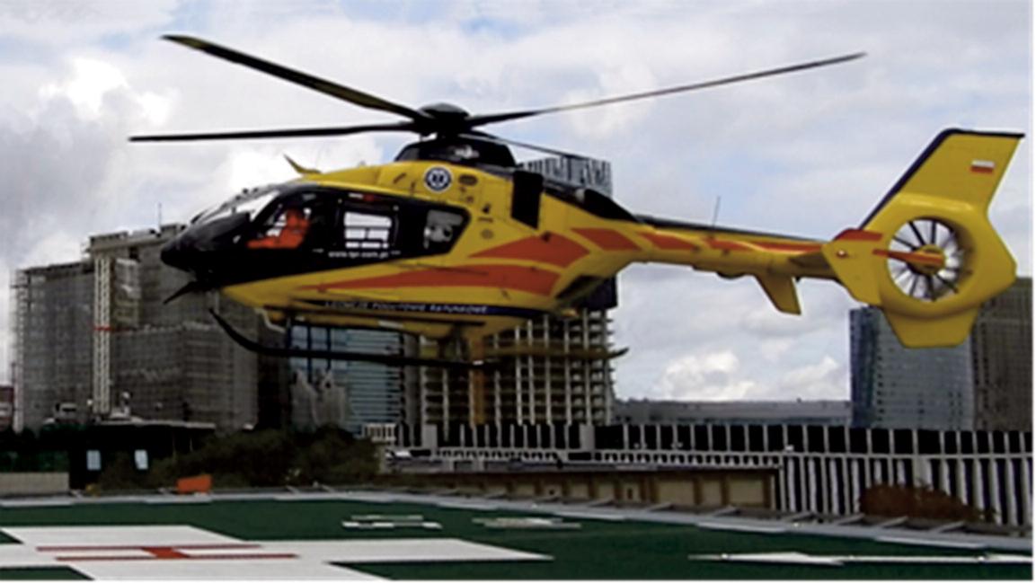 EC-135 helicopter over the tested helipad.