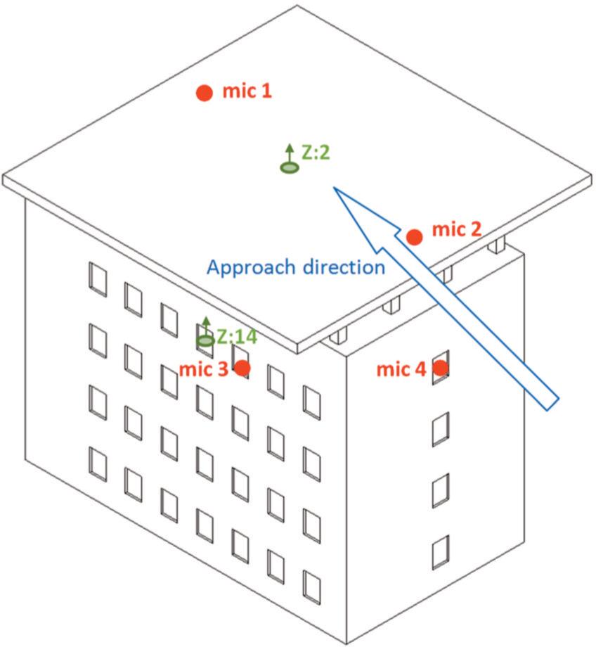 ‘mic2’ at the helipad level from the approach side (similar to the ‘mic1’ microphone, but on the opposite edge of the landing pad),