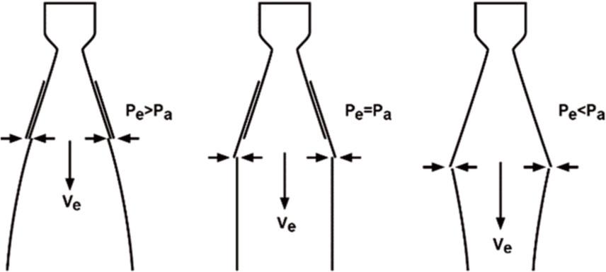 For an ideally expanded nozzle, the second term tends to zero; nozzle expansions are illustrated in Fig. 3.