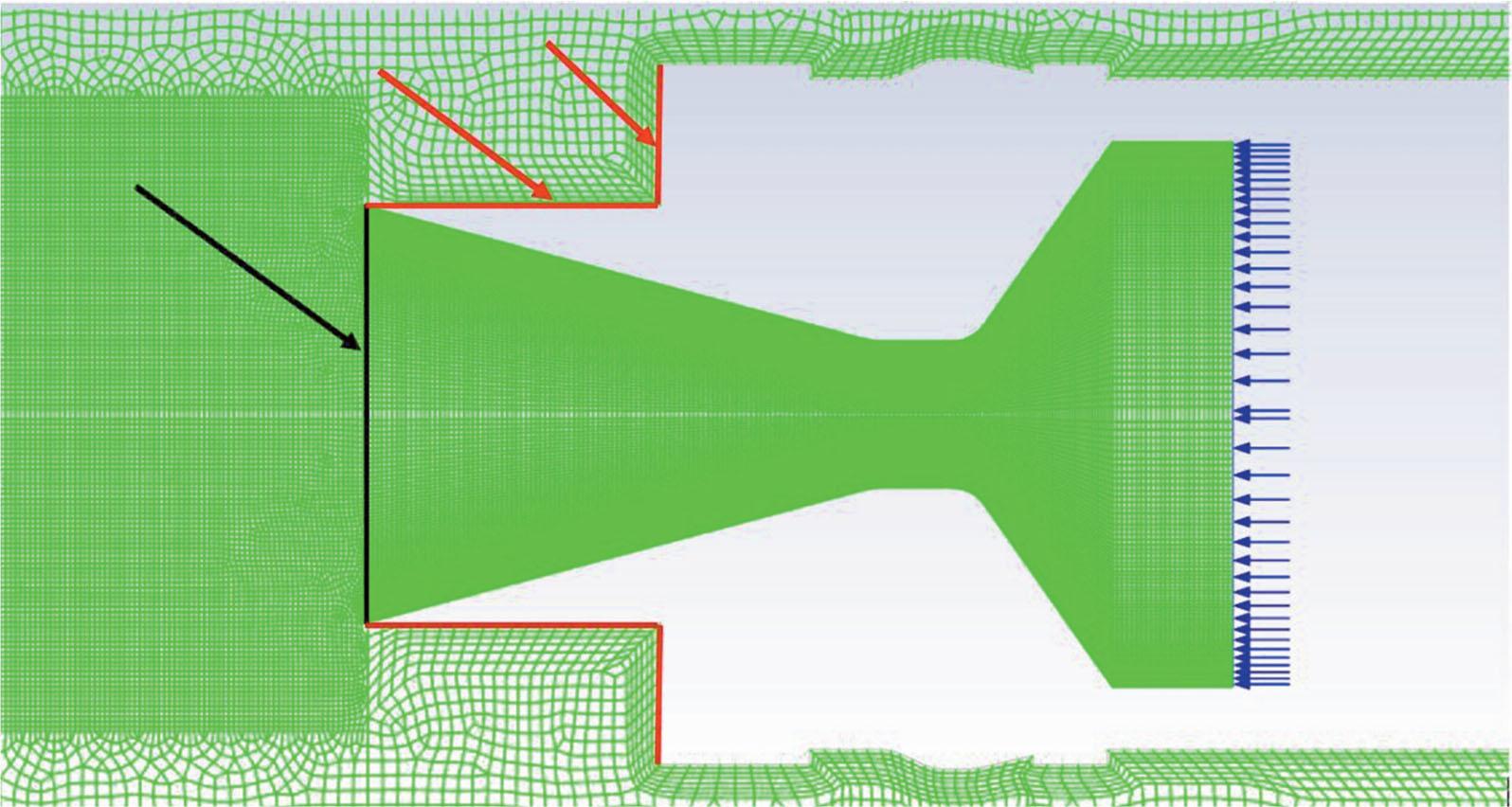 To evaluate the thrust force, it was necessary to define the nozzle exit surface, as the calculations were made for an axisymmetric model. The exit surface of the nozzle is represented by a black line in Fig. 17.