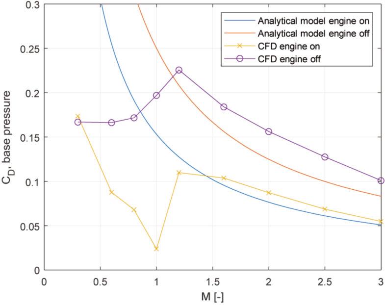 Comparison of base drag coefficients obtained by CFD and the analytical model found in [4].