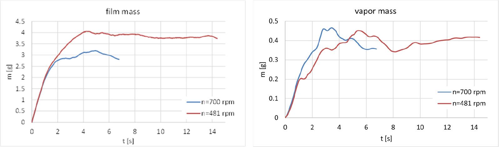 Change of fuel vapor mass over time after start of simulation of fuel film flow.