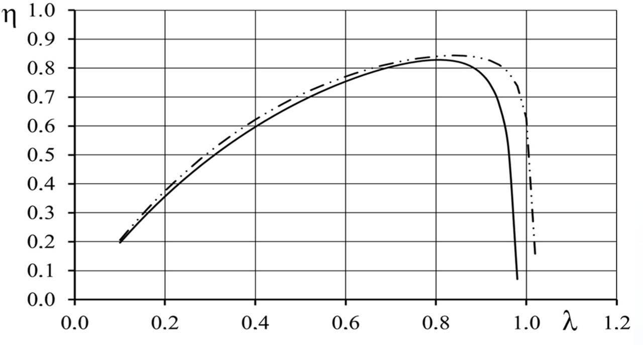 | η (calculation) | 0.448 | 0.530 | 0.603 | 0.669 | 0.729 | 0.780 | 0.820 | 0.843 | 0.842 | 0.809 |
