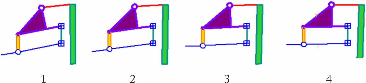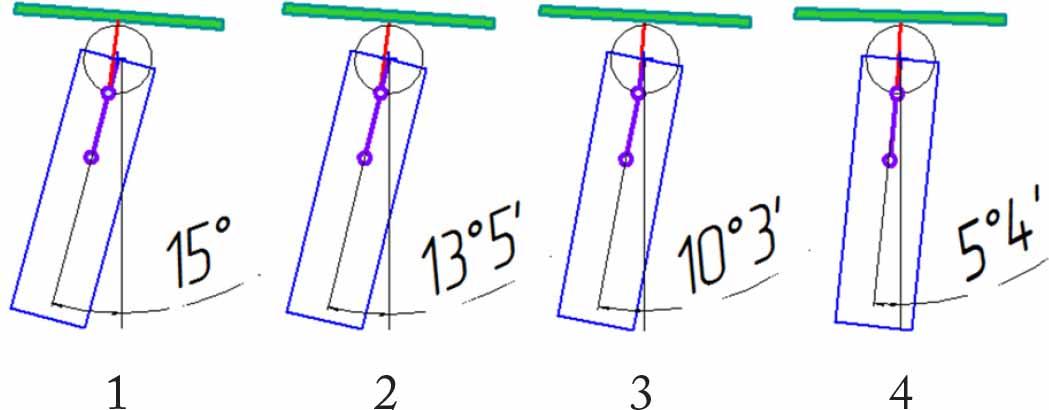 Movement of hydraulic cylinder pistons at δ = 2° and Θ = 2°.