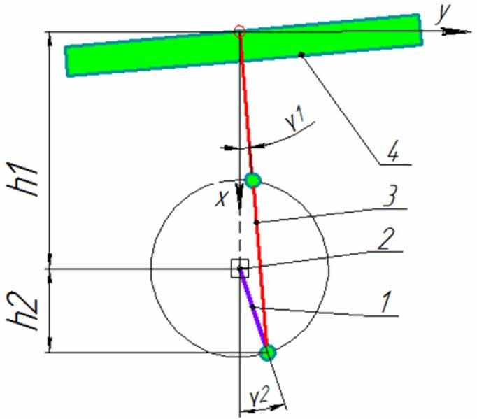 h2 – the distance from the triangle rotation axis to the connection point between the triangle and lever.