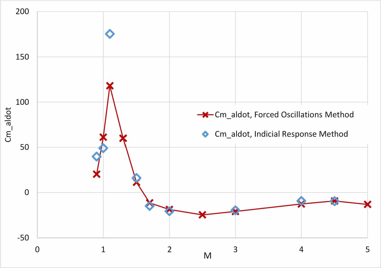 Equation (1) forms the basis for both experimental and computational approaches to determining dynamic stability derivatives. Note, however, that different prescribed motions are required to isolate individual derivatives. For a model oscillating about a fixed pitch axis, the coefficient