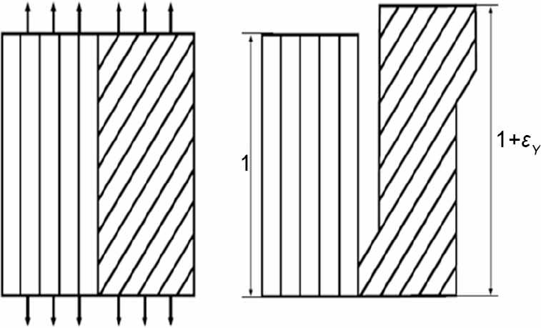 However, how justified is this assumption for a modern composite structure? If we treat an alloy of different metals as a composite, the analogy may indeed hold (Fig. 4). In the present study, however, we examine composite systems in which plastic-deformation zones cannot develop. The stiffness of such materials prevents plastic flow, and failure is therefore governed by brittle mechanisms. As in ceramics and similar brittle materials, damage does not manifest as a gradual increase in crack length; instead, it appears as sudden area-type damage involving sliding or separation across the material volume.