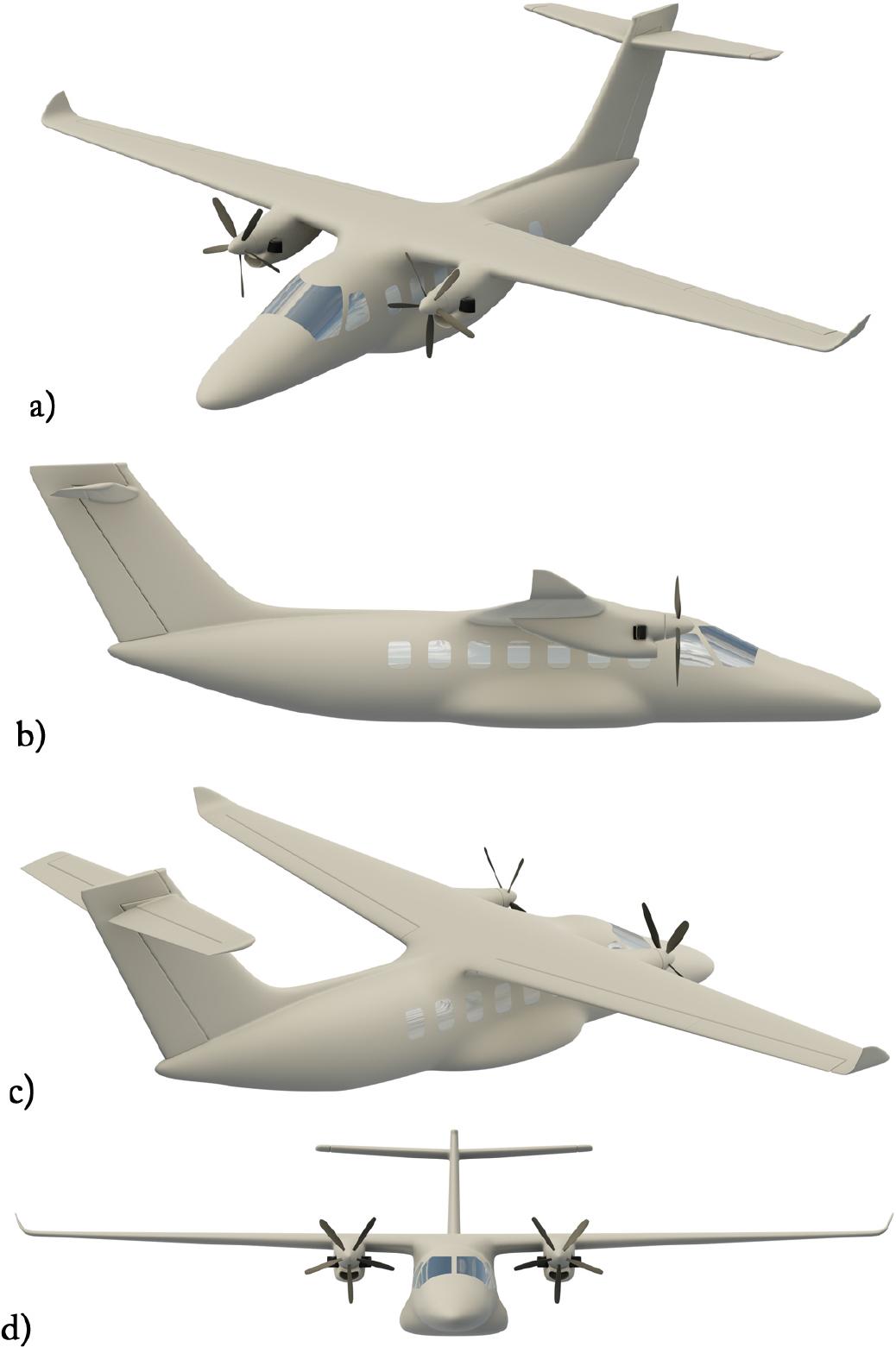 For scientific and methodological investigation, taking into account the calculated mass and volume characteristics of the HTEPP energy system, a new 20-seat passenger aircraft model was developed (Fig. 5). The design of the new aircraft was based on the positive operational characteristics and performance of the An-28, L-410UVP-E [51, 52], L-410UVP-E20, and Evektor EV-55 Outback [21, 22] aircraft.