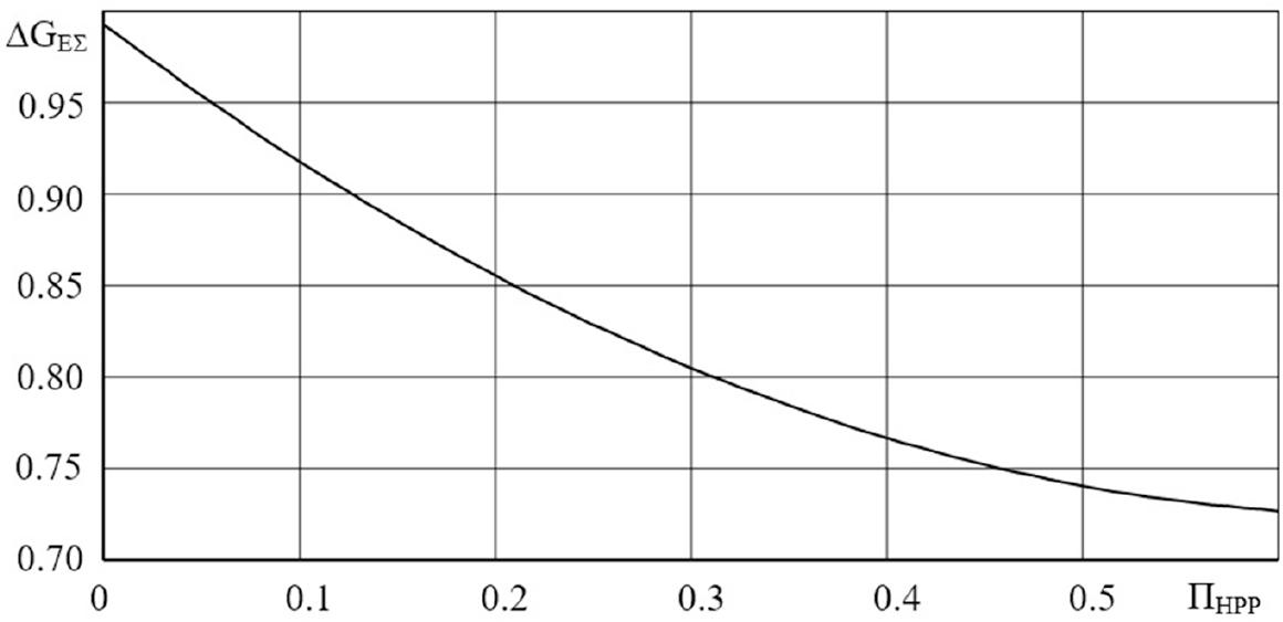 The dependence of the total gross emissions of harmful substances, ΔGE∑ on the HTEPP hybridization degree for the upgraded aircraft using Scheme 1 (Fig. 7) provides a first-order assessment of its impact on improving the aircraft’s environmental performance. In analytical form, this relationship can be approximated by the following equation: