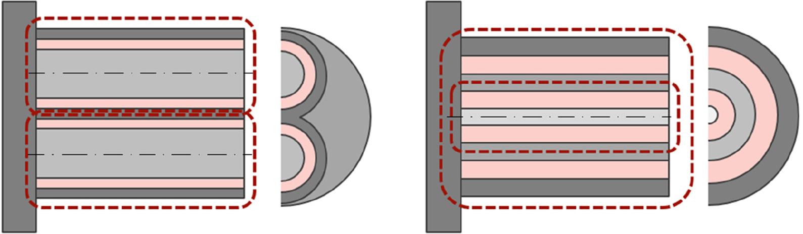 This study focuses on a double annular chamber RDE design and investigates the impact of nozzle geometry on thrust performance using computational fluid dynamics simulations in Ansys Fluent (Fig. 2, right). A half-domain model is employed to improve computational efficiency, taking advantage of axial symmetry to reduce computational cost while maintaining solution accuracy.