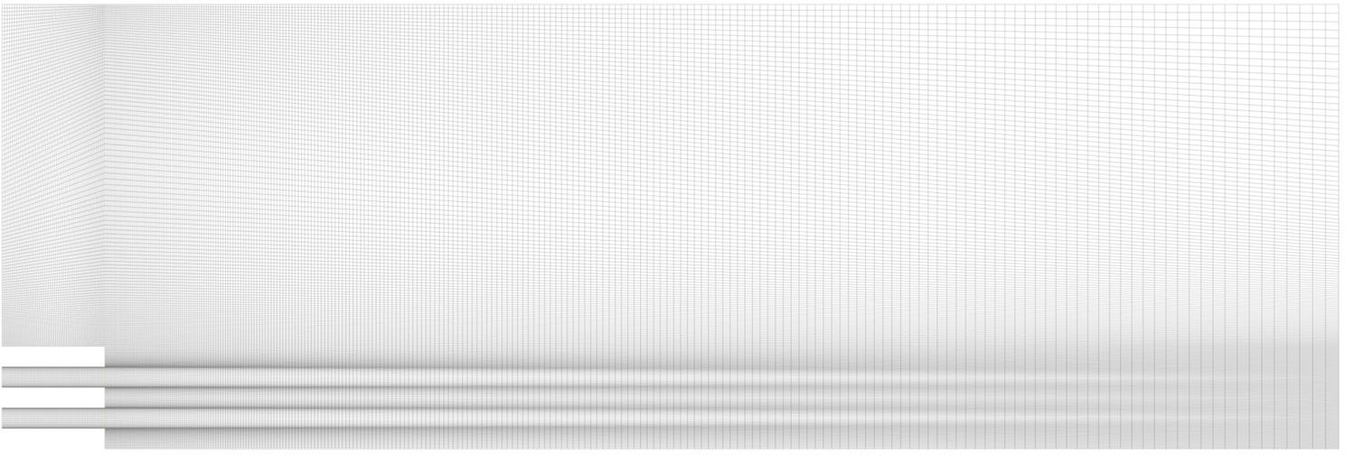 The computational domain was carefully designed to accurately represent the nozzle geometry and associated flow characteristics, while maintaining a balance between computational efficiency and solution accuracy. Figure 5 illustrates the computational domain, and Fig. 6 presents the mesh configuration for Model C, where mesh refinement was applied in critical regions. These critical regions include the nozzle section and the engine walls, where strong flow–wall interactions occur. In these areas, the mesh was refined to a cell width of 0.01 mm, compared to 1.0 mm in the surrounding regions. With a mesh growth rate of 1.02 and targeted local refinement, a highly accurate yet computationally efficient mesh was achieved.
