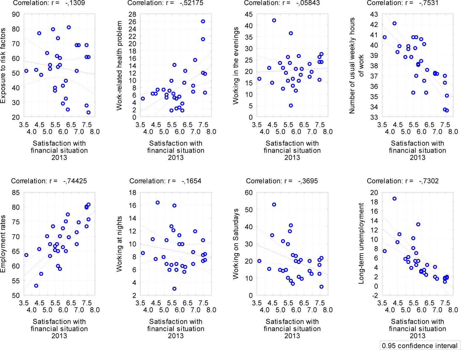 Correlations between satisfaction with the financial situation and selected labour market factors