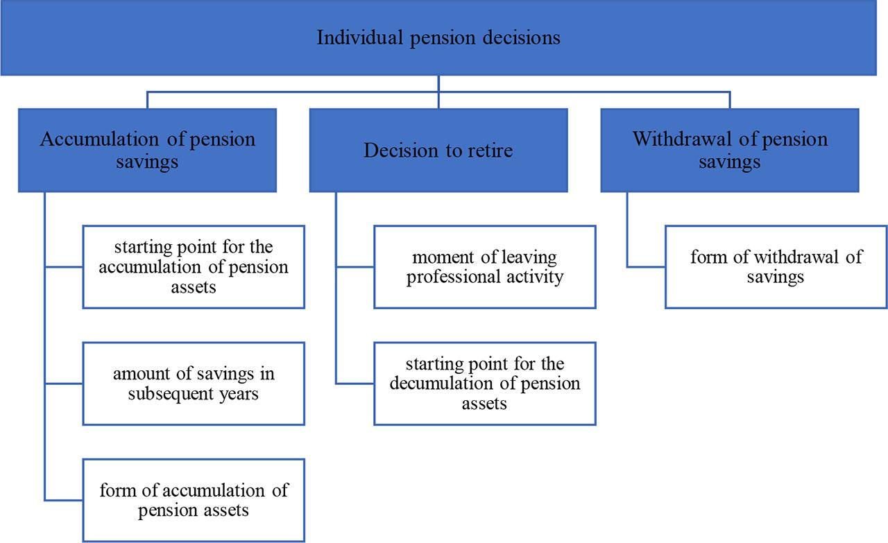 | Default options | The default option is a standard choice for which no additional action is required. As a result of the propensity to choose the default option, people do not make the intellectual effort to analyse the factors that need to be taken into account when deciding whether to retire, but retire at the universal retirement age. |