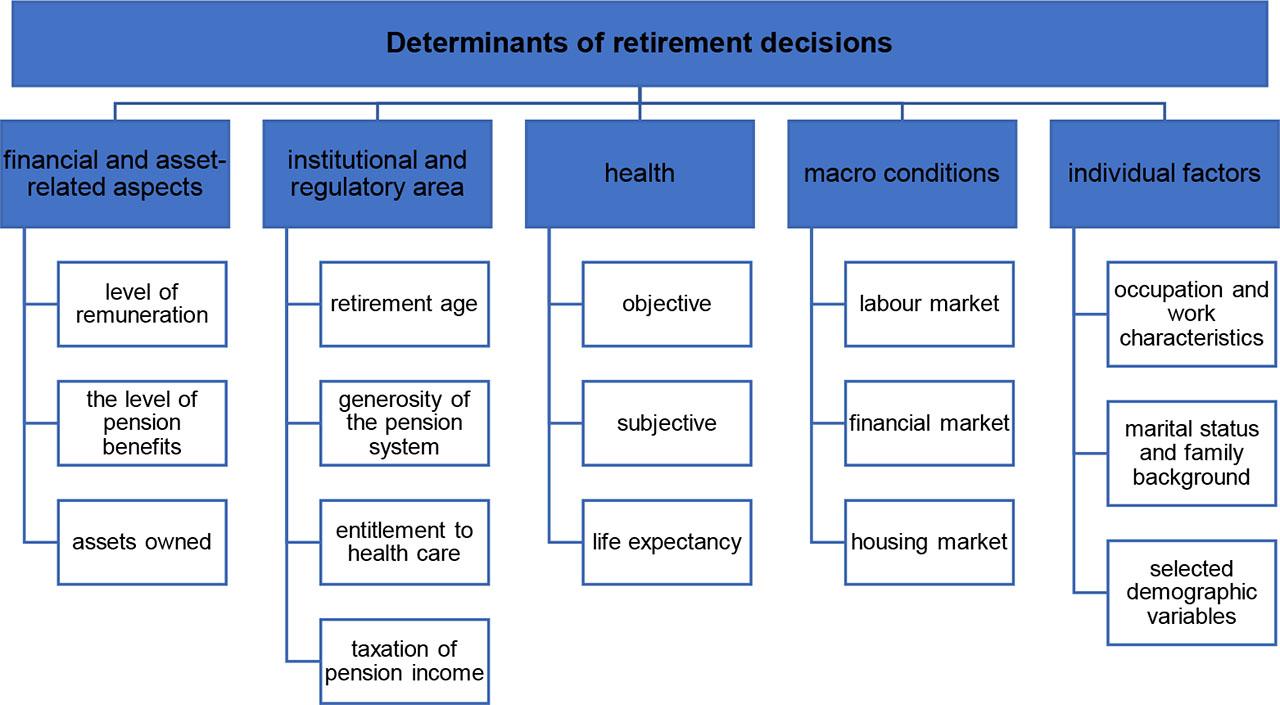 | Social norms and social environment | When making decisions, people are guided by social norms about retirement (e.g. the usual age for ending working life) and by the opinions, beliefs and experiences of others. |