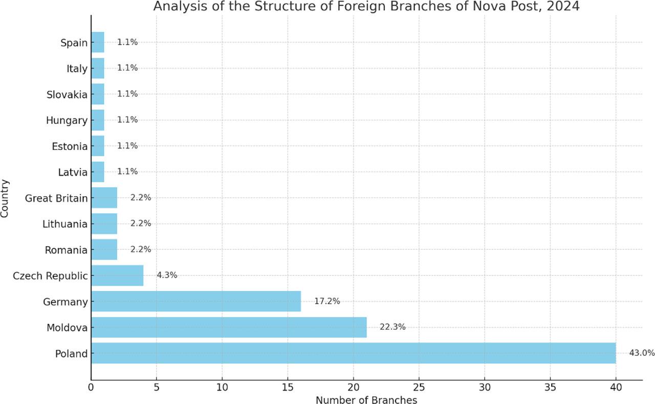 Analysis of the structure of foreign branches of Nova Post, 2024