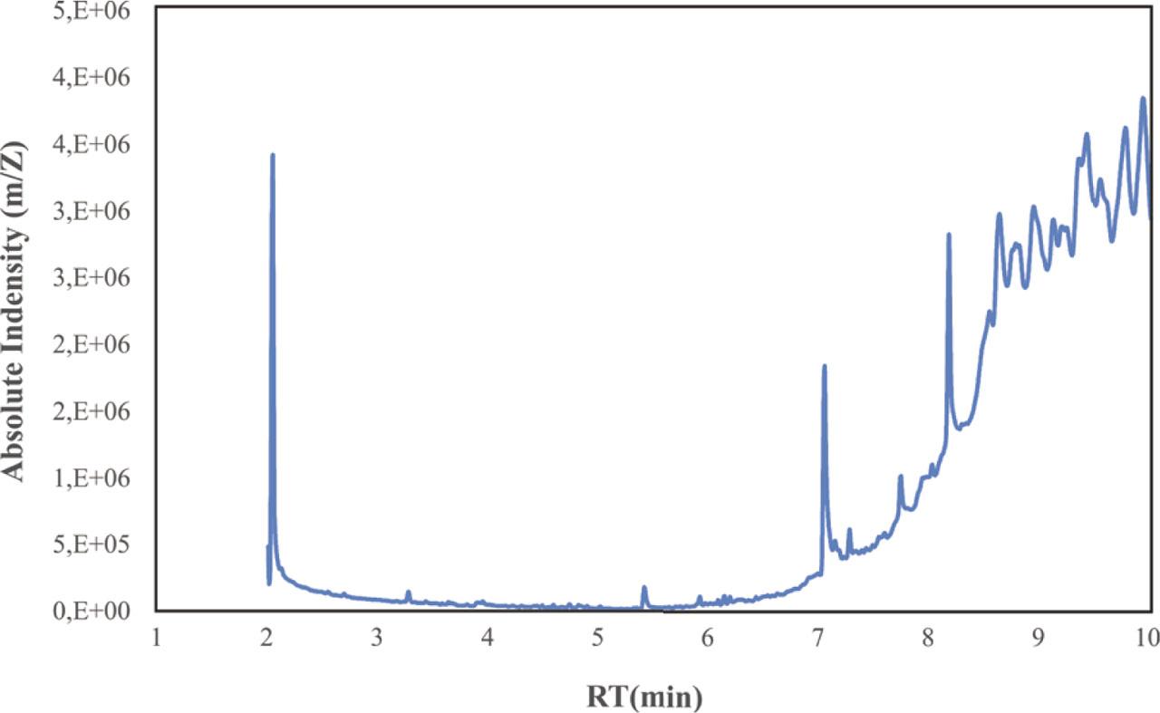 GC-MS spectrum of CSE extracted from the bacterial strain MBR4