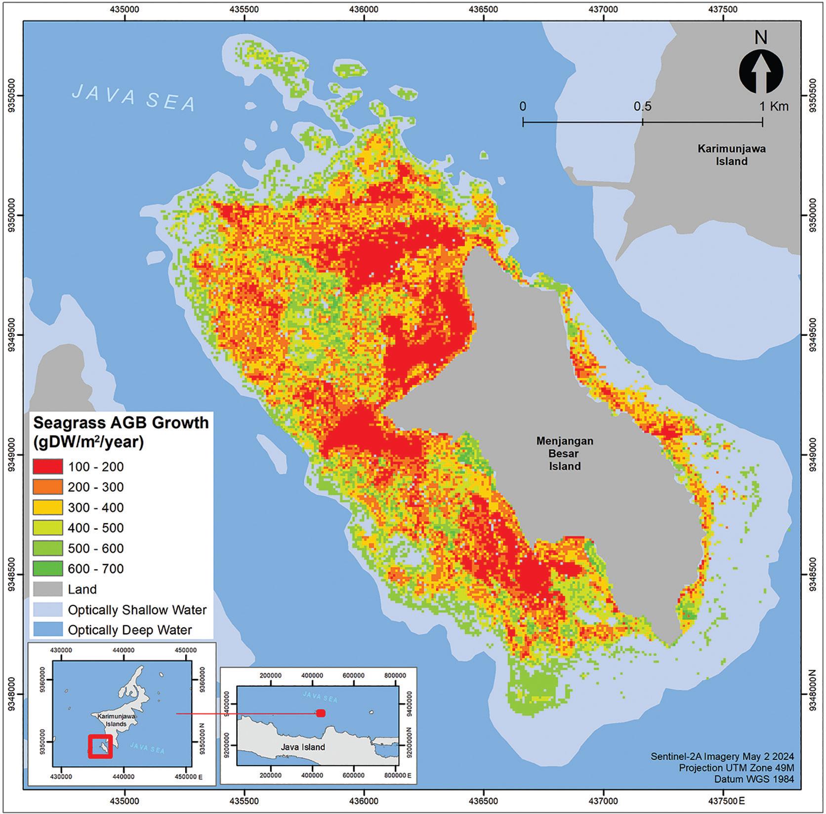 The AGB growth map of multispecies seagrass meadows on Menjangan Besar Island. AGB, aboveground biomass.