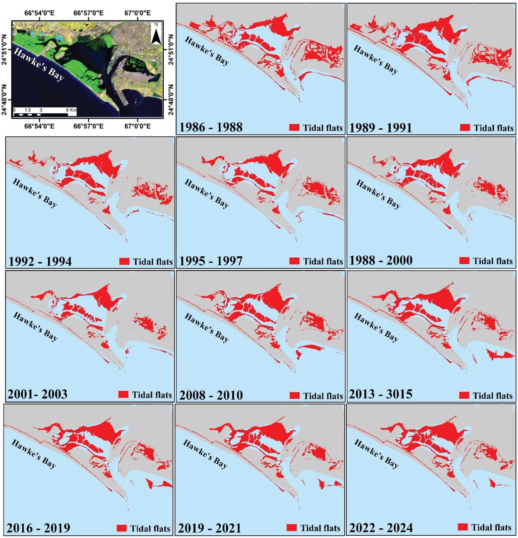 TF maps in KPT, Pakistan, from 1986 to 2024. KPT, Karachi Port Trust; TF, tidal flat.