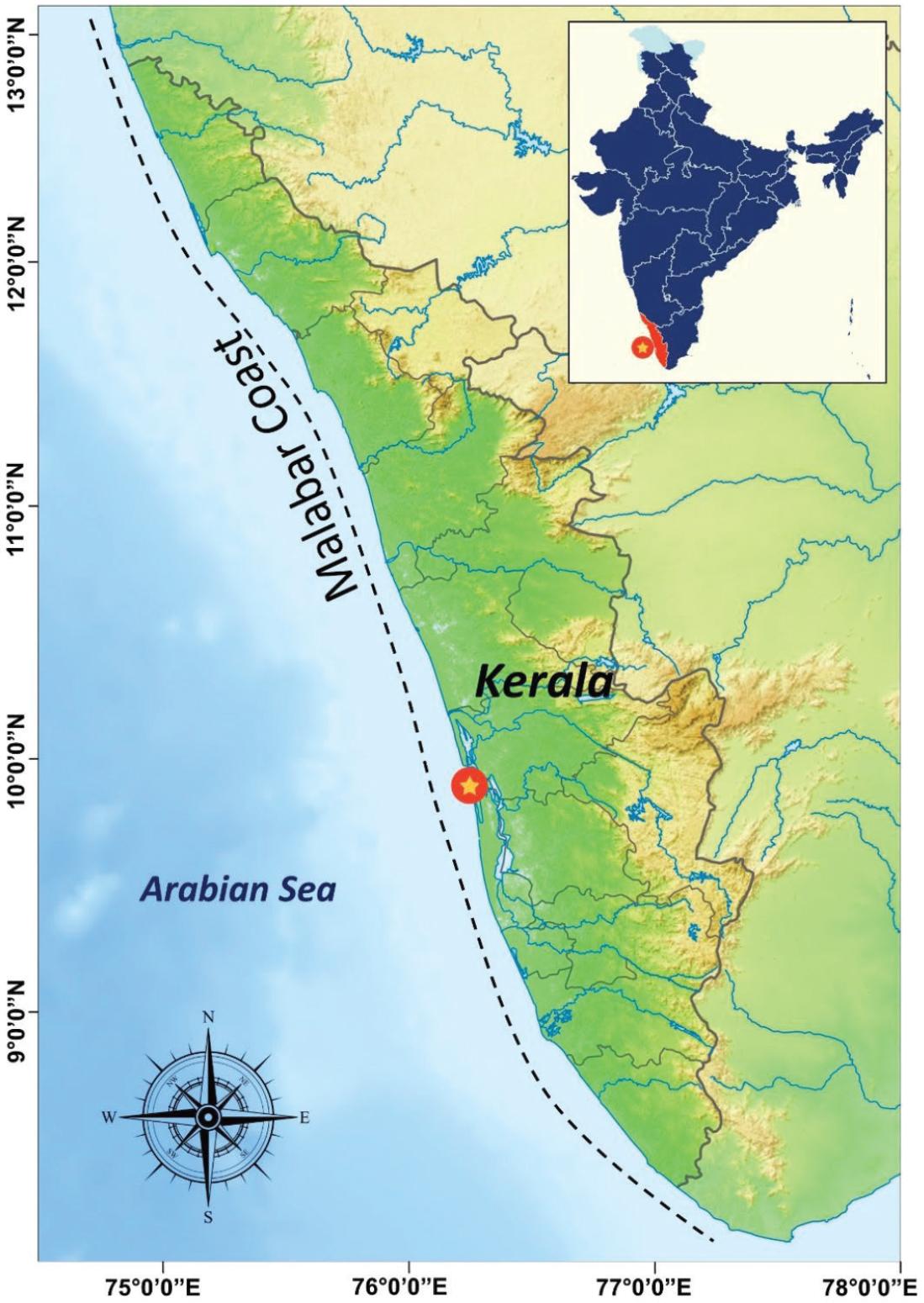 Map indicating the site of collection (red circle), in Cochin Estuary, Kerala, west coast of India.