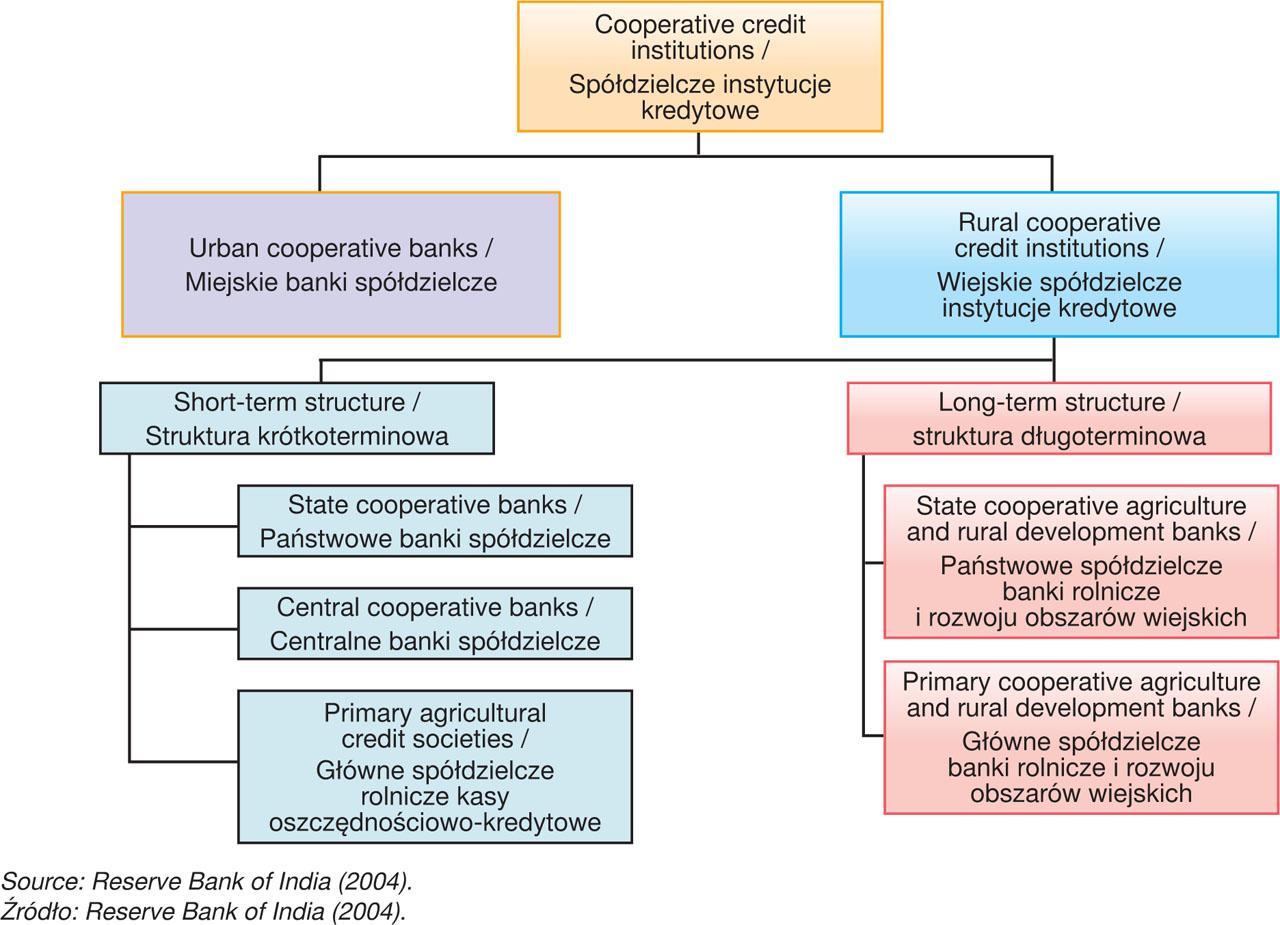 In India, cooperative credit institutions are categorized into two main groups: urban cooperative banks (UCBs) and rural cooperative credit institutions. UCBs operate primarily in urban and semi-urban areas, focusing on the financial needs of small borrowers. Rural cooperative credit institutions are divided into two systems: the long-term cooperative credit structure (LTCCS) and the short-term cooperative credit structure (STCCS), each addressing different financial requirements in rural regions. The LTCCS is present in 13 states, with varied organizational structures, including unitary, two-tier, and mixed systems. On the other hand, the STCCS follows a three-tier structure, consisting of State Cooperative Banks (StCBs) at the state level, District Central Cooperative Banks (DCCBs) at the district level, and Primary Agricultural Cooperative/Credit Societies (PACS) at the village level. PACS, which operate outside the Banking Regulation Act of 1949, serve as cooperative credit societies. UCBs are governed by state or multi-state cooperative laws, with the Reserve Bank of India (RBI) and the National Bank for Agriculture and Rural Development (NABARD) overseeing regulations and inspections (RBI, 2004).