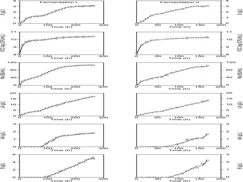 | Parameter | Biomass | Viable cell counts | Nisin | Lactic acid | Acetic acid | Butane-2,3-diol |