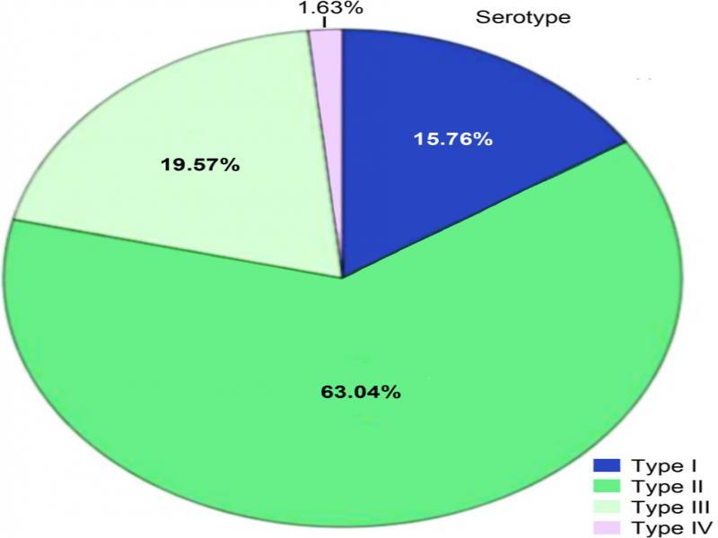 Serotype distribution among the sample studied showing the dominance of serotype 2.